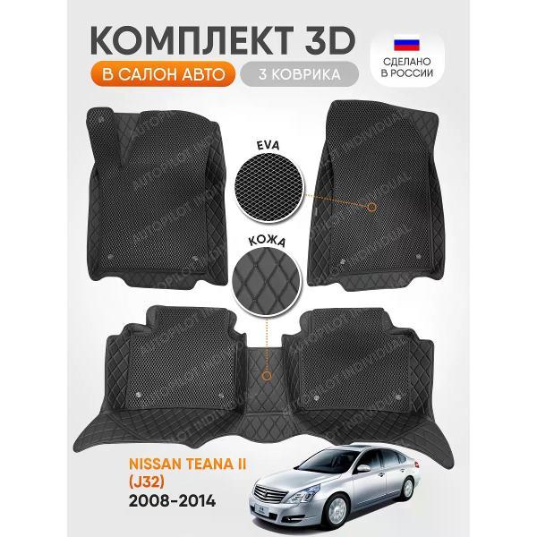 Коврик автомобильный AUTOPILOT INDIVIDUAL KZ-black-black-CRT10-black-black-592_3д из экокожи с ворсом Nissan Teana ll (J32) 2008-2014
