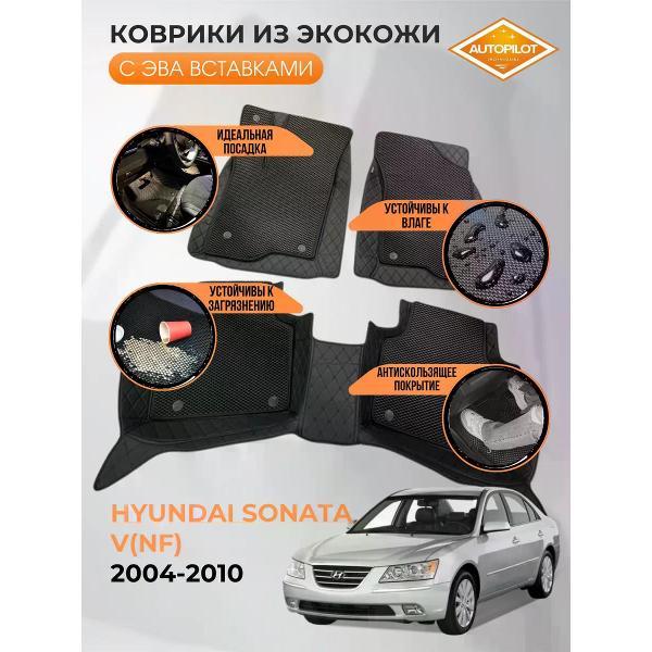 Коврик автомобильный AUTOPILOT INDIVIDUAL KZ-black-black CRT10-black-black-311_3д из кожи с ворсом для Hyundai Sonata V(NF) 2004-2010