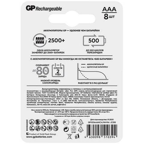 • Форм-фактор аккумулятора:AAA
