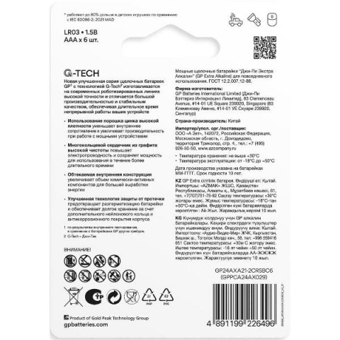 • Щелочная (Alkaline) батарея:Да