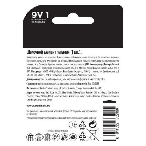 • Рабочее напряжение:9  В