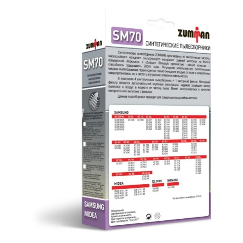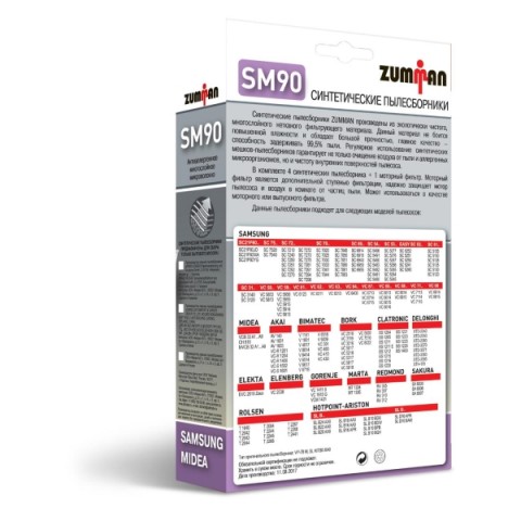 • Совместимость с пылесосами ::Samsung: SC21F60*, VC2500 (SC20M25*, SC15M25*), SC75*, SC72*, SC70*, SC69*, SC54*, SC53*, EASY SC52*, SC51*, SC31*, VC-58*, VC-59*, VC-61*, VC-62*, VC-63*, VC-64*, VC-67*, VC-68*, VC-69*, VC-71*, VC-86*, Midea: VCB33A1, VCB33A2, VCB33A3, VCB35B15C-A, VCB35B15C, VCB37A140Q, VCB37A141, VCB40A14D-B, VCB43B1, VCB52A15A-B, MVCB32A1, MVCB32A2, MVCB32A3, MVCB32A4, MVCB42A2, MVCB45A1, VC33J-08F, Hotpoint-Ariston: SLB24AA0, SLB22AA0, SLB20AA0, SLB18AA0, SLB16AA0, APR, SLB10BDB, BCH, BDW, BPB, BQH, SLB07BEW1, BEB1, BPB, SLD16APR, SLD10BAW, SLD07BDB, Vitek: VT-1898, VT-1891, VT-1892, VT-1899, VT-8106, VT-8123, VT-1802, VT-1813, VT-8108, VT-8116