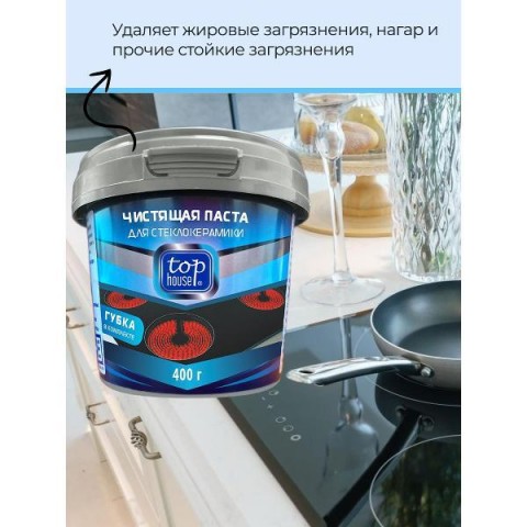 • Назначение:для очистки стеклокерамических варочных поверхностей электрических, газовых и индукционных плит от стойких загрязнений, подходит для других твердых кухонных поверхностей – моек, кафеля, нержавеющей стали, эмали, стекла