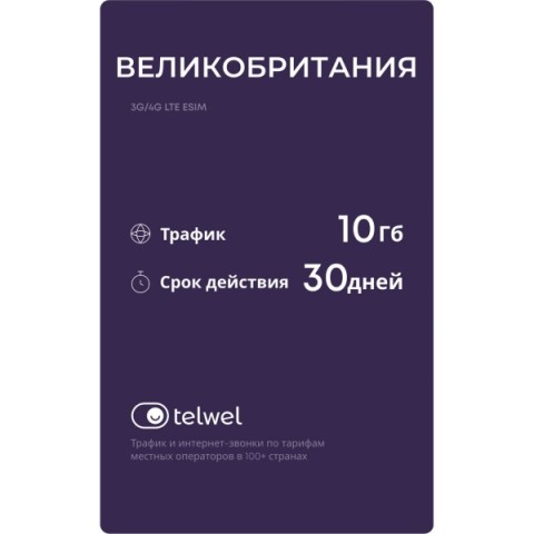 • Тарифный план:Великобритания, 10Гб 30 дней