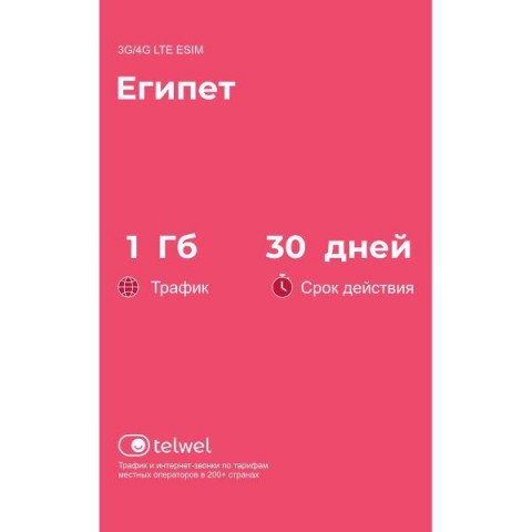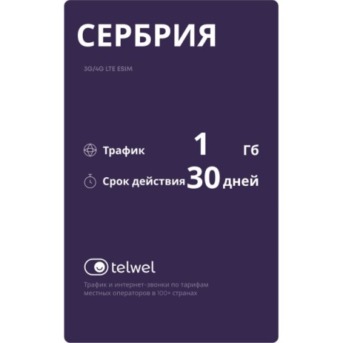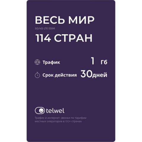 • Тарифный план:Весь мир 114 стран 1Гб 30 дней