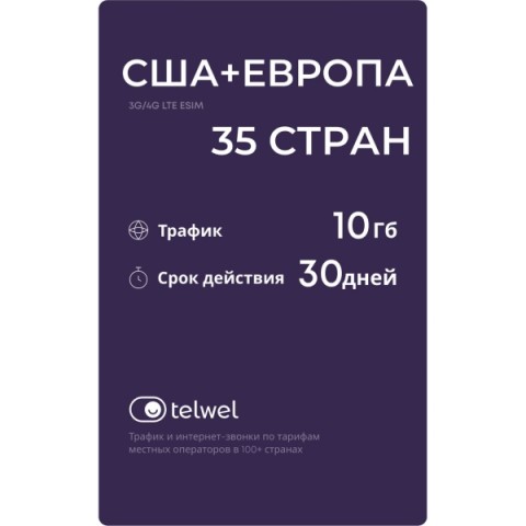 • Тарифный план:США + Европа, 10Гб|30 дней. Для eSIM телефонов