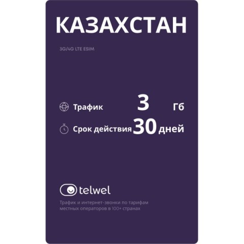 • Тарифный план:Казахстан 3Гб|30 дней. Для eSIM телефонов