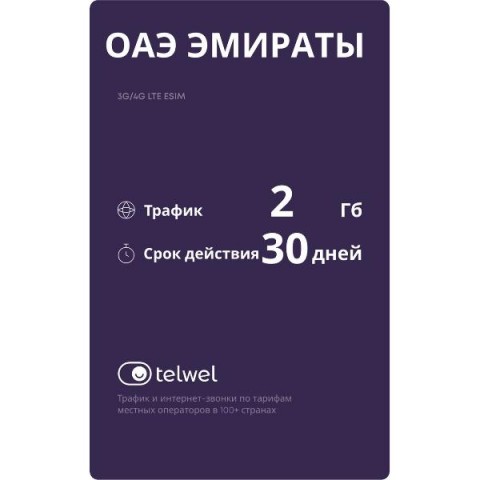• Тарифный план:ОАЭ Эмираты 2Гб|30 дней. Для eSIM телефонов