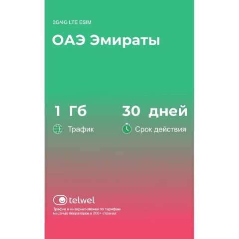 • Тарифный план:ОАЭ Эмираты, 1Гб 30 дней