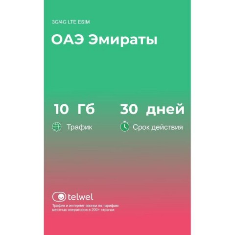 • Тарифный план:ОАЭ Эмираты, 10Гб 30 дней