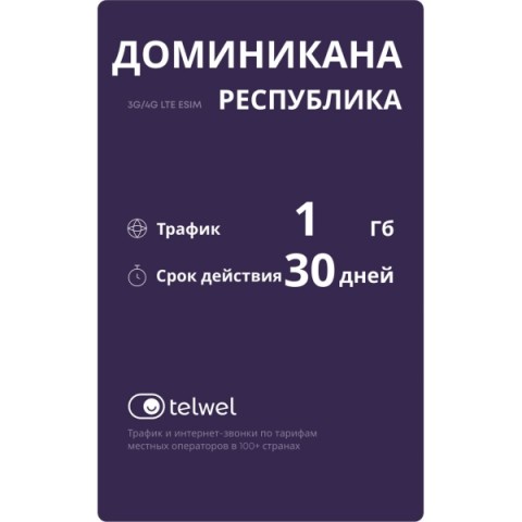 • Тарифный план:Доминиканская Республика 1Гб 30 дней. Для eSIM телефонов