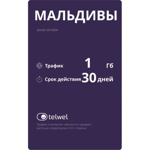 • Тарифный план:Мальдивы 1Гб 30 дней. Для eSIM телефонов