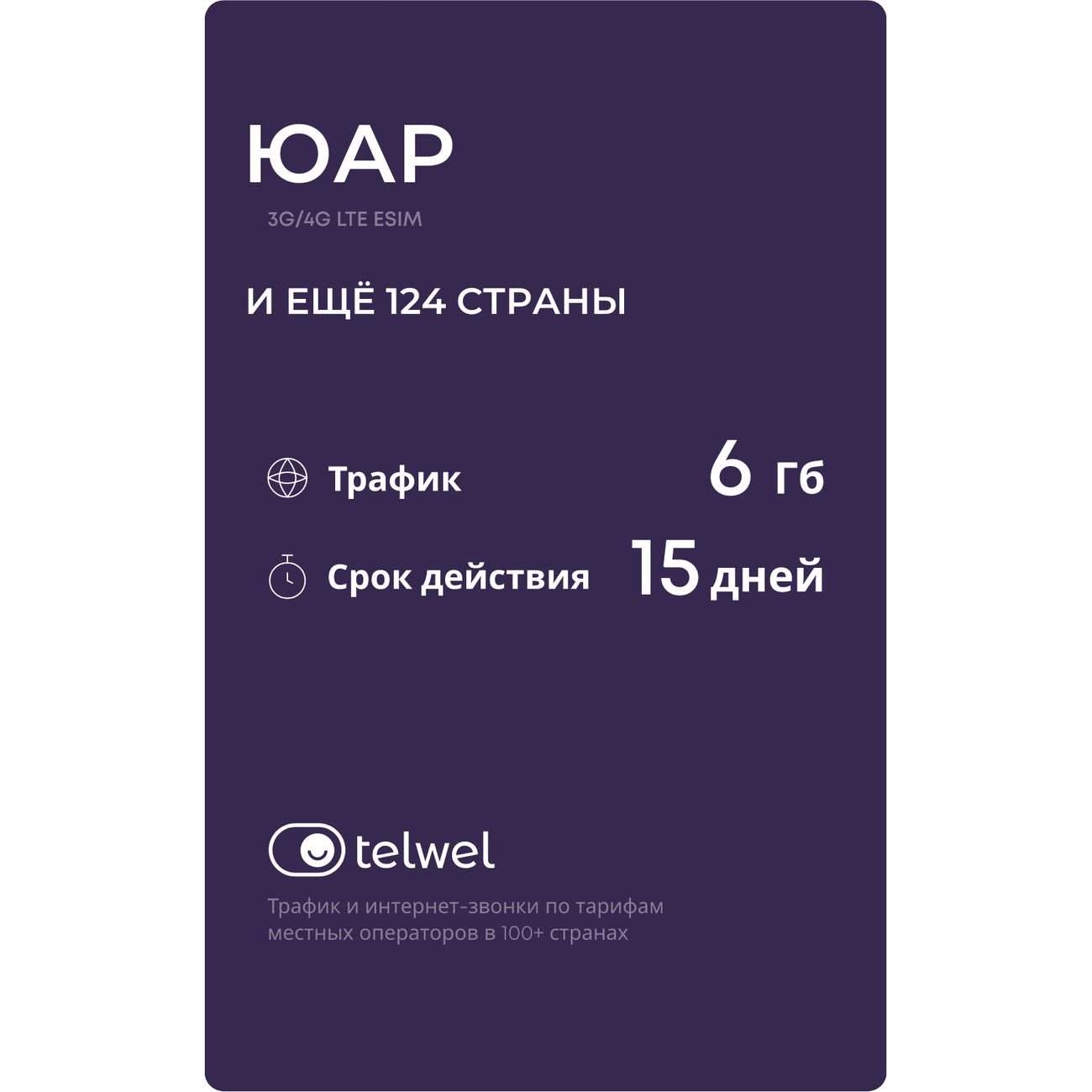 eSIM Telwel пакет ЮАР 6Гб 15 дней