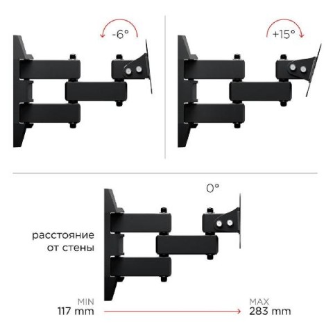 • Минимальное расстояние от стены:117 - 283 мм