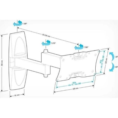 • Диапазон регулировки по горизонтали:180*