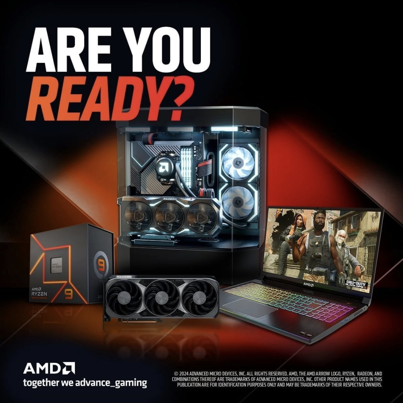 Название видеокарты пока не разглашается. Зато новинку изобразили рядом с процессором серии Ryzen 9, а это может быть намеком на игровой комплект.