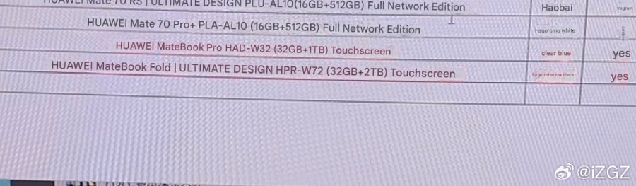 Согласно другим утечкам, устройство получит название Huawei MateBook Fold Ultimate Design, ОЗУ на 32 ГБ и ПЗУ на 2 ТБ.