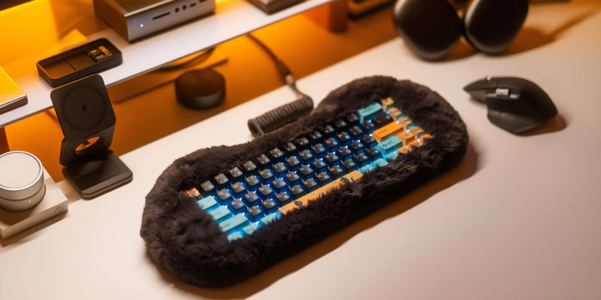 У пушистой насадки магнитное крепление. Пока у клавиатуры две расцветки — светлая и темная. Производители уверяют, что в будущем добавят еще несколько цветов.