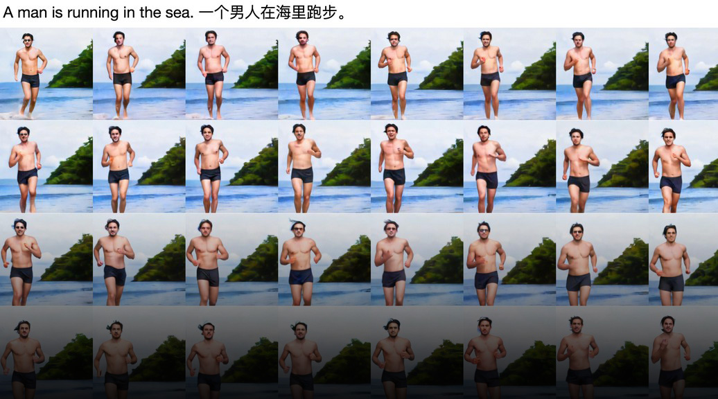 Как можно видеть, с одними описаниями CogVideo справлялась хорошо, с другими получалось не очень. Так, на текстовый запрос «Лев пьет воду» нейросеть выдала ролик, в котором зачем-то приделала животному человеческие руки. А на запрос «Девушка бежит по пляжу вечером» нейросеть создала видео, на котором девушка действительно бежит по пляжу, но днем.