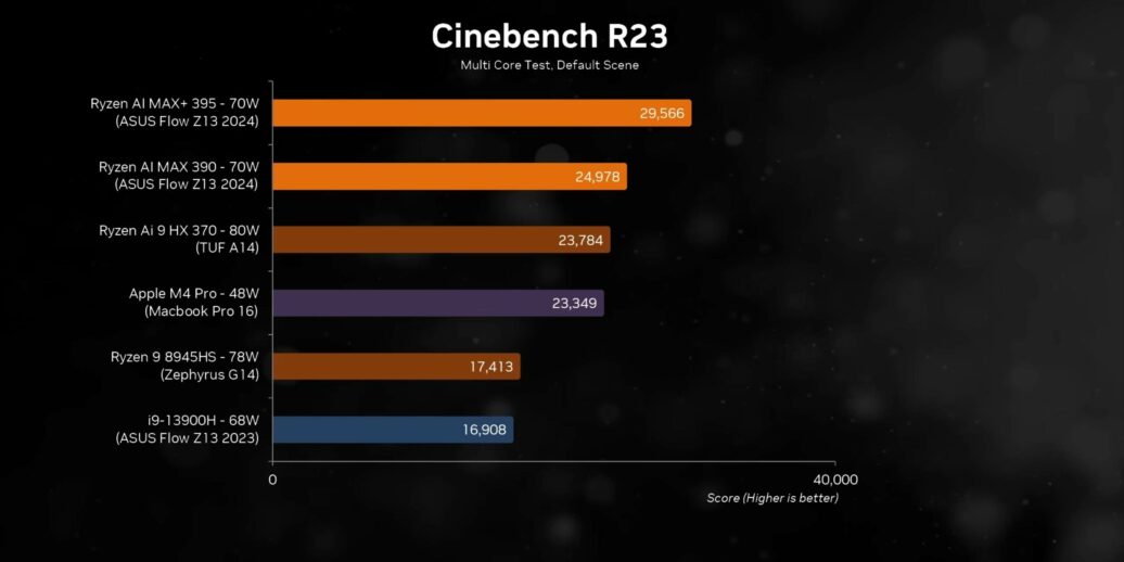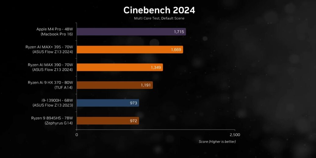 По отзывам, новинка практически сопоставима с чипом Apple M4 Pro, а в некоторых моментах даже его обходит. Например, в приложении Cinebench R23 Ryzen AI MAX+ 395 показал себя заметно лучше Apple M4 Pro. Но при этом энергии он потребляет больше, чем «яблочный» чипсет. А вот в приложениях Photoshop, Lightroom и Cinebench 2024 чип Apple оказался более производительным.
