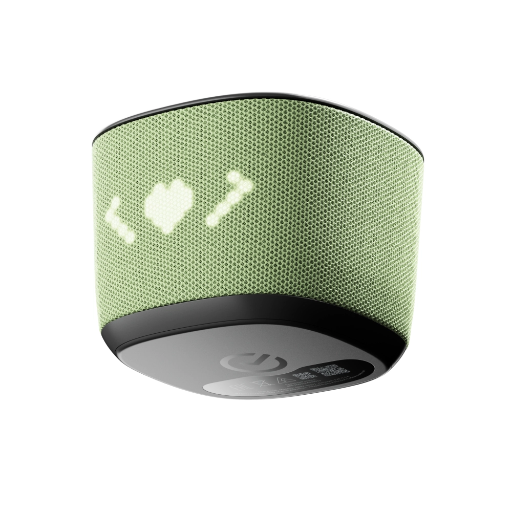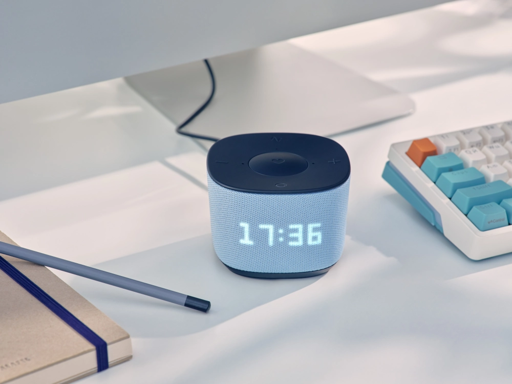 Еще у колонки есть монохромный LED-дисплей,на который можно вывести часы или информацию о погоде. Корпус отделан тканью с водоотталкивающей пропиткой.