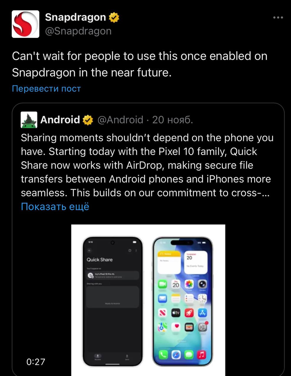 Qualcomm работает над поддержкой AirDrop для устройств на Snapdragon