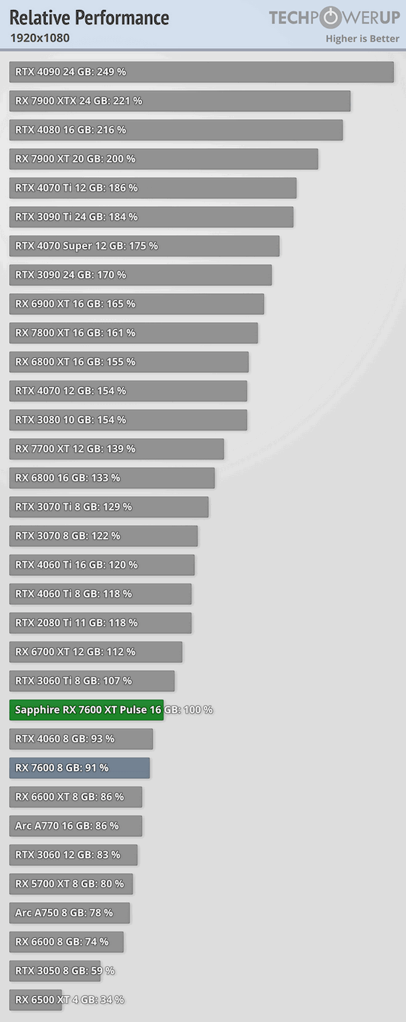 - Разрешение 1080р: Radeon RX 7600 XT примерно на 6% быстрее RTX 4060.