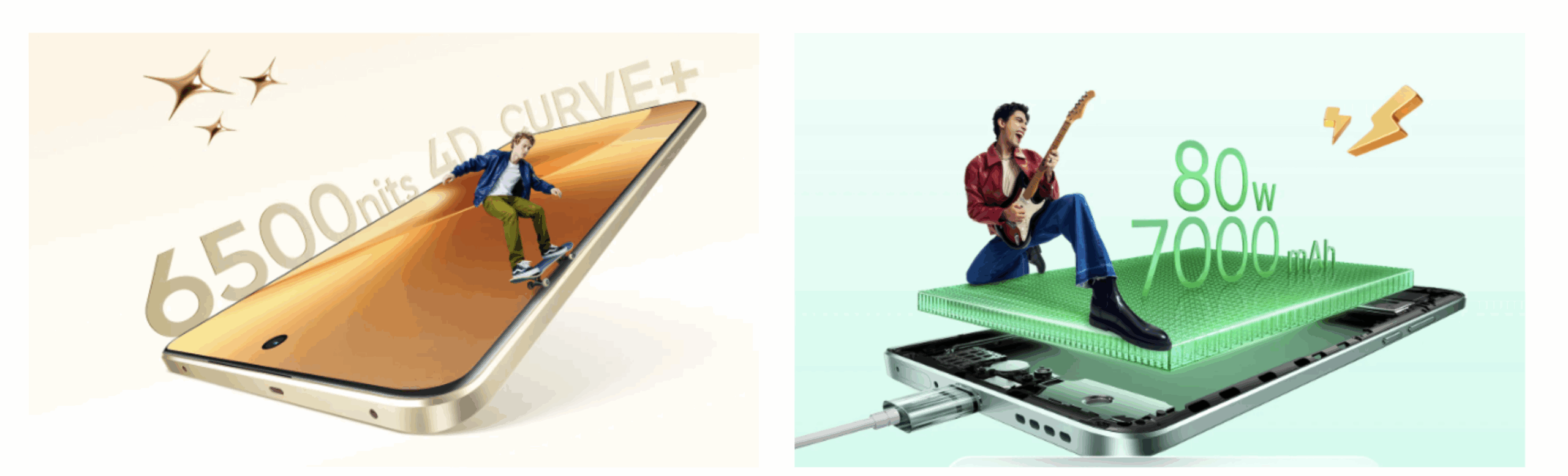Что касается экрана: будет AMOLED HyperGlow 4D Curve+ с пиковой яркостью 6500 нит, частотой обновления 144 Гц и защитным стеклом Corning Gorilla Glass. В realme заявили, что дисплей займет 94% площади передней панели. Работать смартфон будет на базе Qualcomm Snapdragon 7 Gen 4.