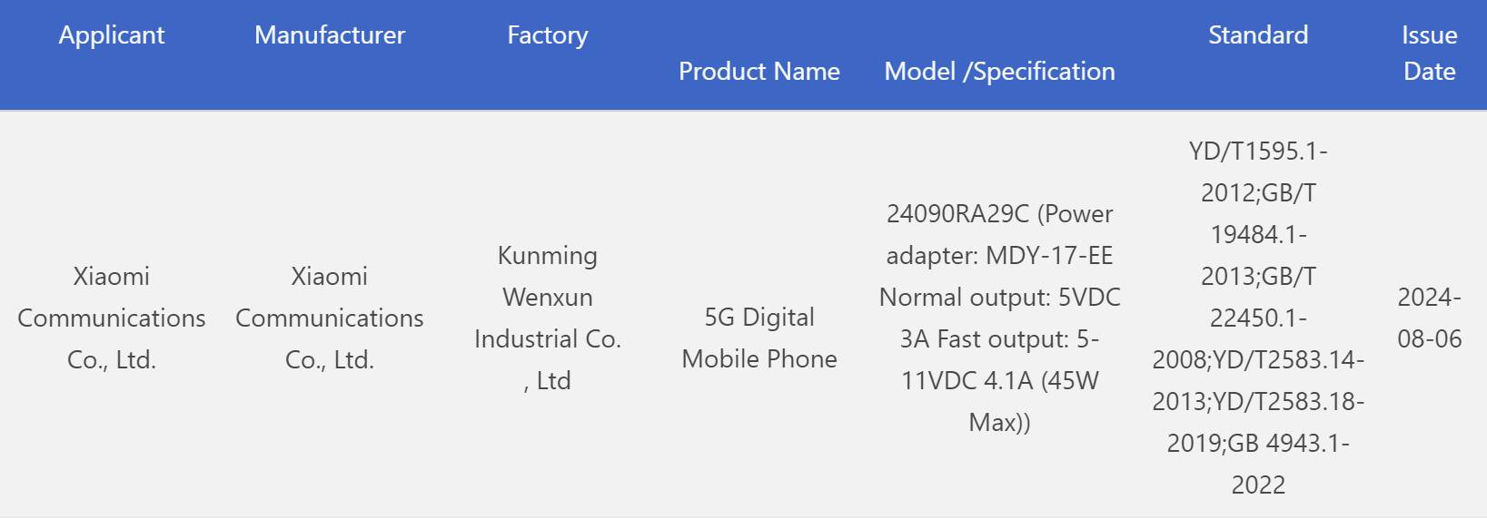 Сертификация 3C указывает на то, что новинка может поставляться с зарядным устройством MDY-17-EE — оно будет поддерживать быструю зарядку мощностью 45 Вт. Напомню, что у предыдущей модели была поддержка быстрой зарядки мощностью 33 Вт.