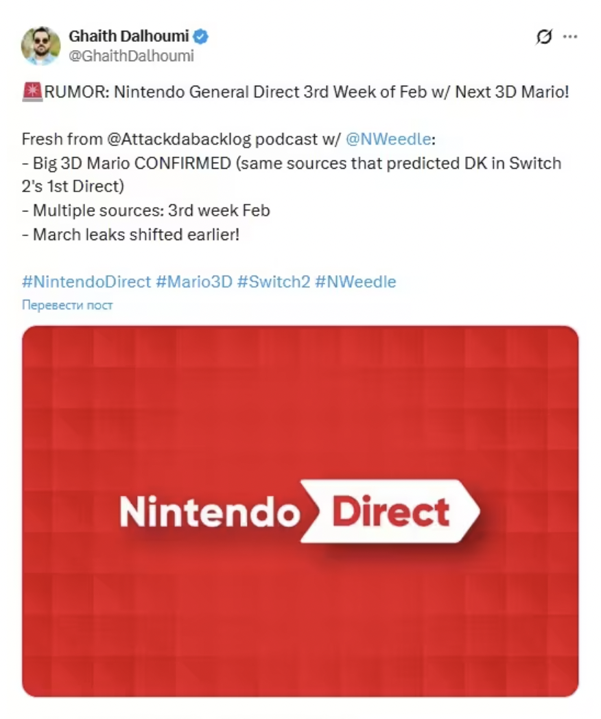 Если верить утечке, компания готовится провести презентацию Nintendo Direct в феврале.