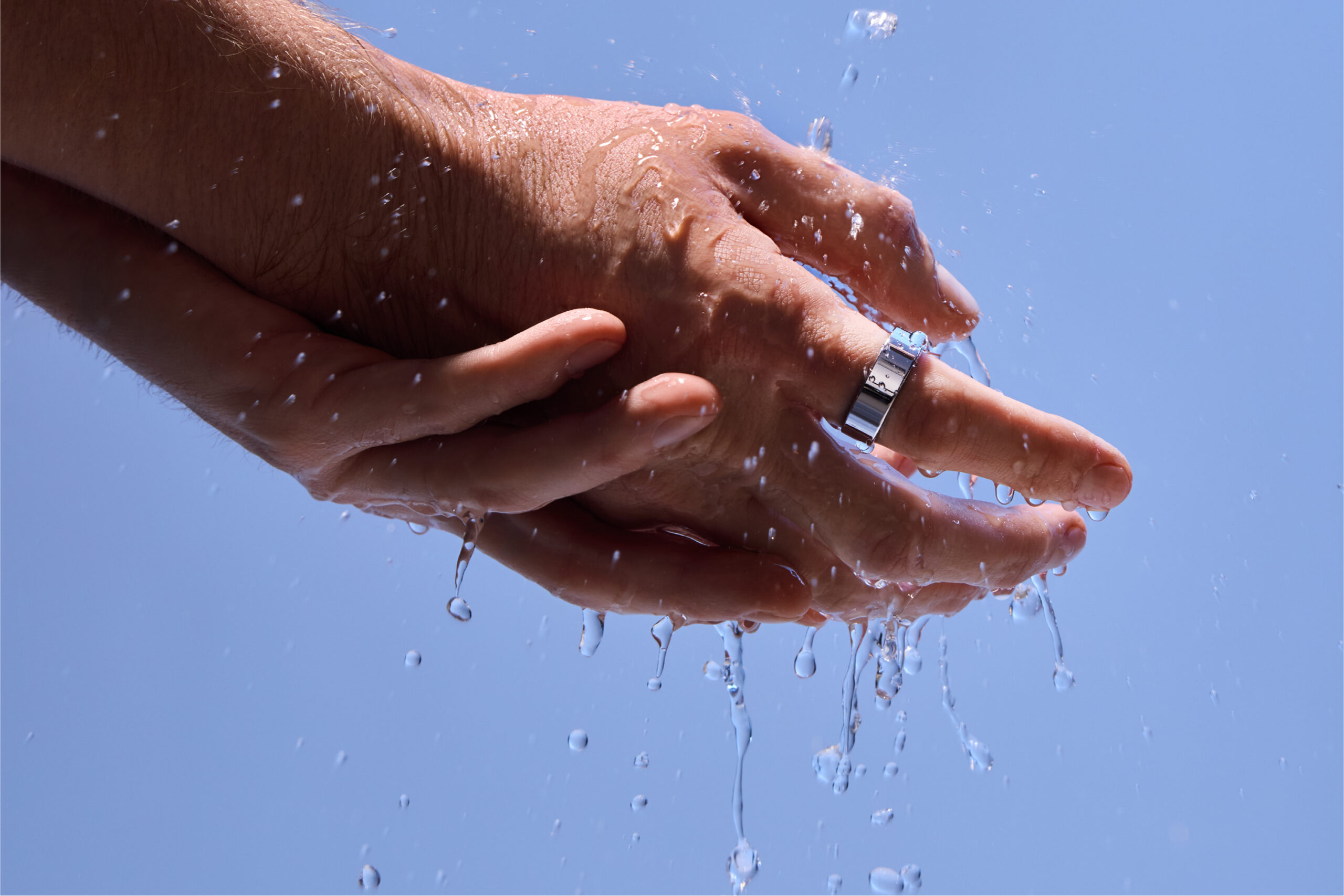 Корпус кольца изготовлен из титанового сплава с PVD-покрытием, внутренняя часть — из гипоаллергенного полимера. При этом вес всего 5 г. Заряда батареи хватает до 7 дней. Кольцо представлено в восьми размерах и двух цветах — черный хром и серый хром.