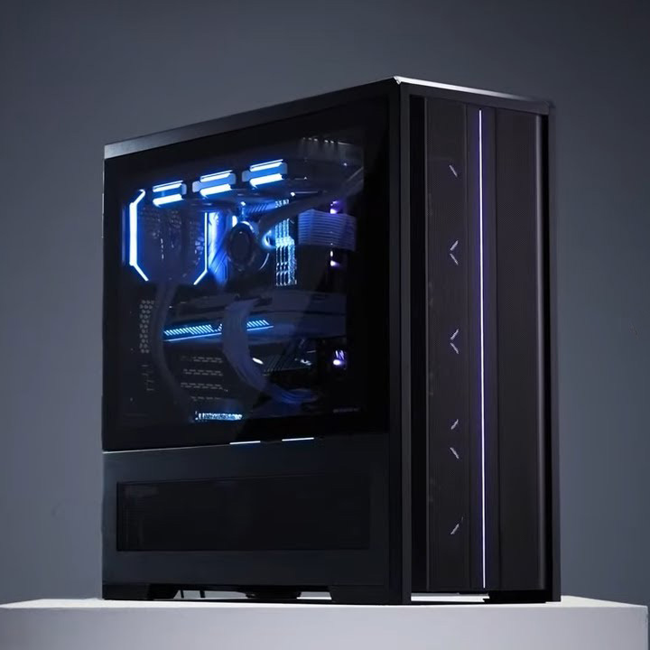 Производитель предусмотрел три режима сборки. Первый как раз позволяет установить в одном корпусе два комплекта компонентов — фактически два самостоятельных ПК. В этом случае в верхней секции устанавливаются полноразмерные компоненты, а в нижней остается место для системы на компактной платы типоразмера Mini-ITX. При этом за охлаждение будут отвечать до 11 вентиляторов диаметром 120 мм, до двух радиаторов системы жидкостного охлаждения (СЖО) размером 480 мм и один радиатор СЖО на 280 мм. В чем смысл? ПК в верхней части можно использовать для игр, а энергоэффективную нижнюю систему — для работы, серфинга по сети и просмотра видео.