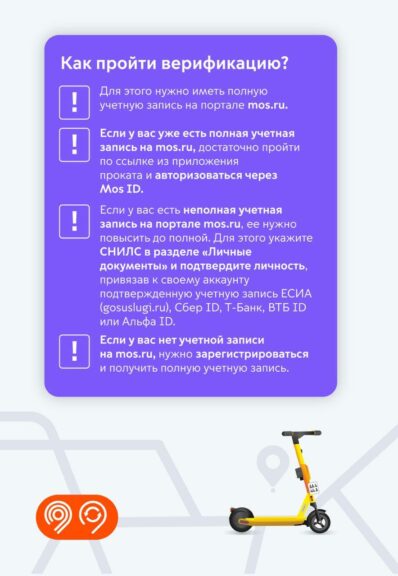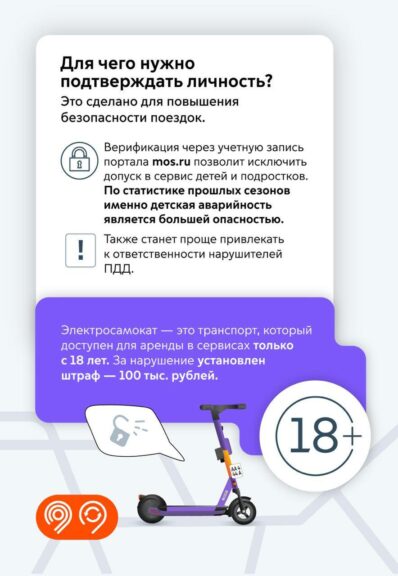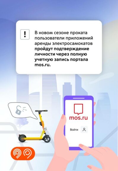 Всем жителям столицы, которые планируют арендовать электросамокат, необходимо создать полную учетную запись на mos.ru. Так власти смогут отслеживать возраст самокатчиков и нарушения ПДД. Детям доступ к аренде будет закрыт.