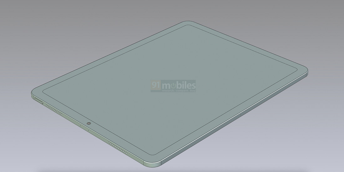 Передняя часть устройства напоминает 12,9-дюймовый iPad Pro, но у новинки будут более толстые рамки вокруг экрана.
