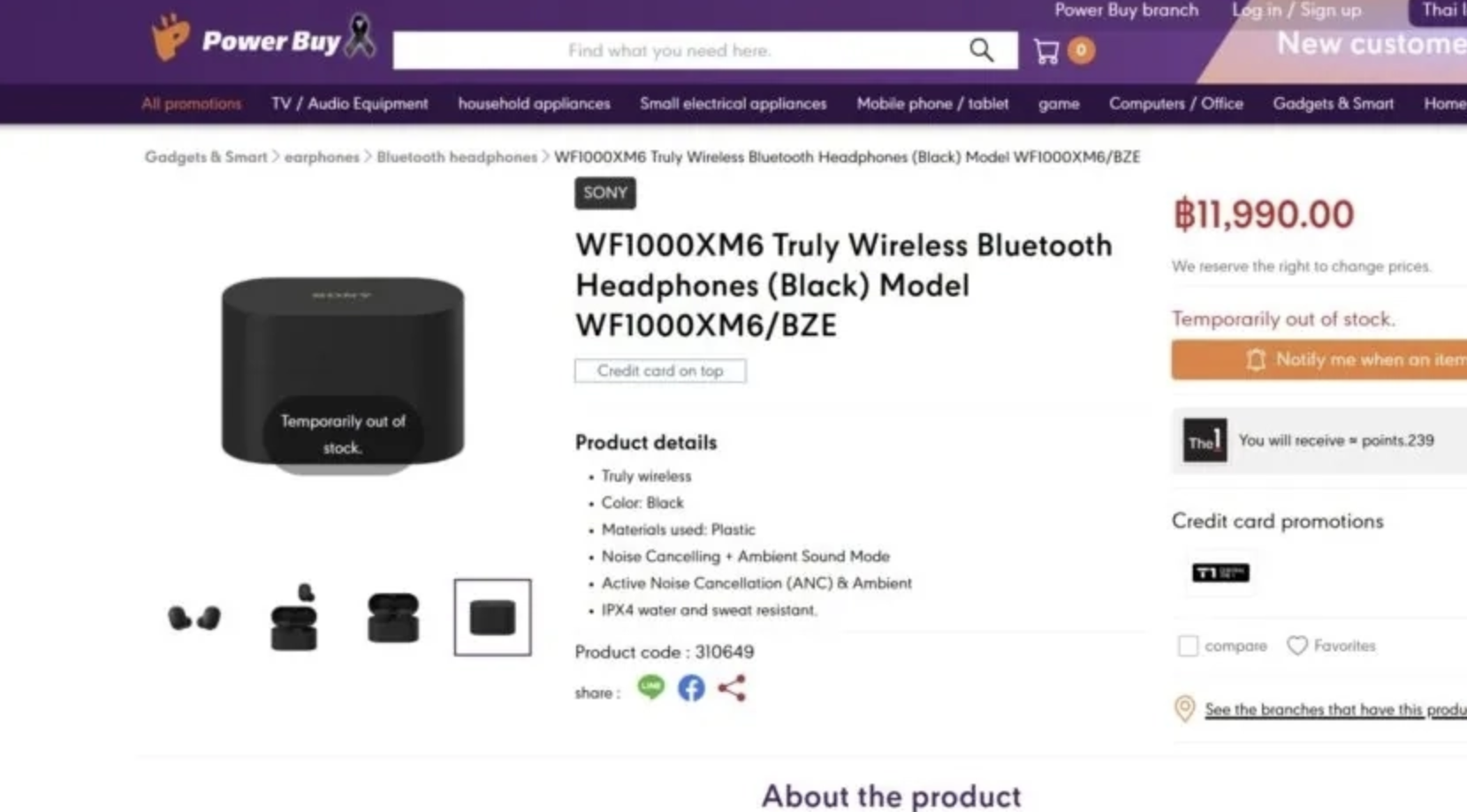Изображение Sony WF-1000XM6 опубликовал один тайский ретейлер.