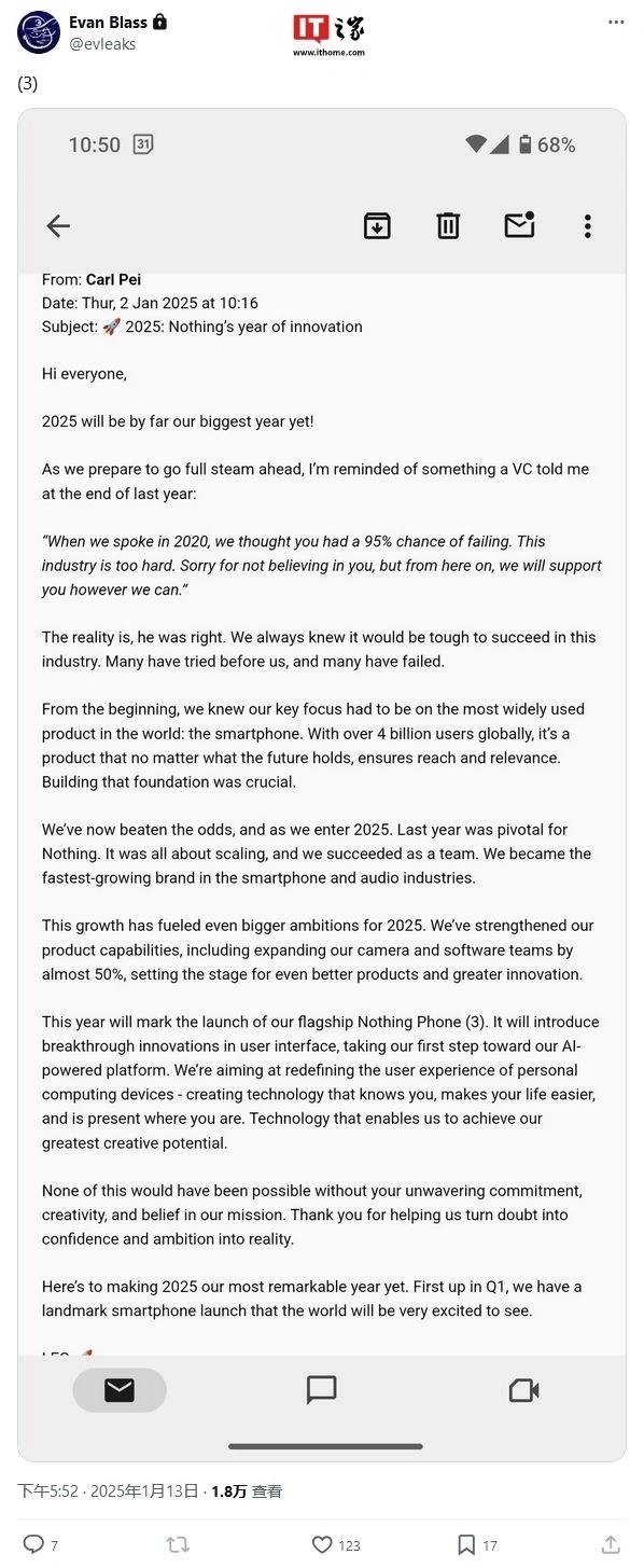 В сети опубликовали письмо, в котором глава Nothing Карл Пей раскрыл дату выхода Nothing Phone (3) и не только. Рассказываю.
