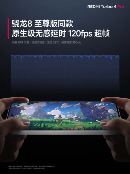 Работает REDMI Turbo 4 Pro на базе чипсета Snapdragon 8s Gen 4. Экран — 6,83-дюймовый OLED с разрешением 1,5K, частотой обновления 120 Гц и пиковой яркостью — 3200 нит.