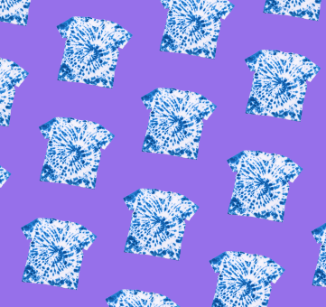 Полностью натуральные ткани — хлопок, лен или вискозу — можно окрашивать тем же способом, но без предварительного прогрева. Для окрашивания в технике тай-дай скрутите ткань (например, футболку) одним из способов: по кругу от центра или спиралью. Закрепите не толстыми, но прочными резинками и используйте одну или больше красок по той же схеме, что и с пряжей.