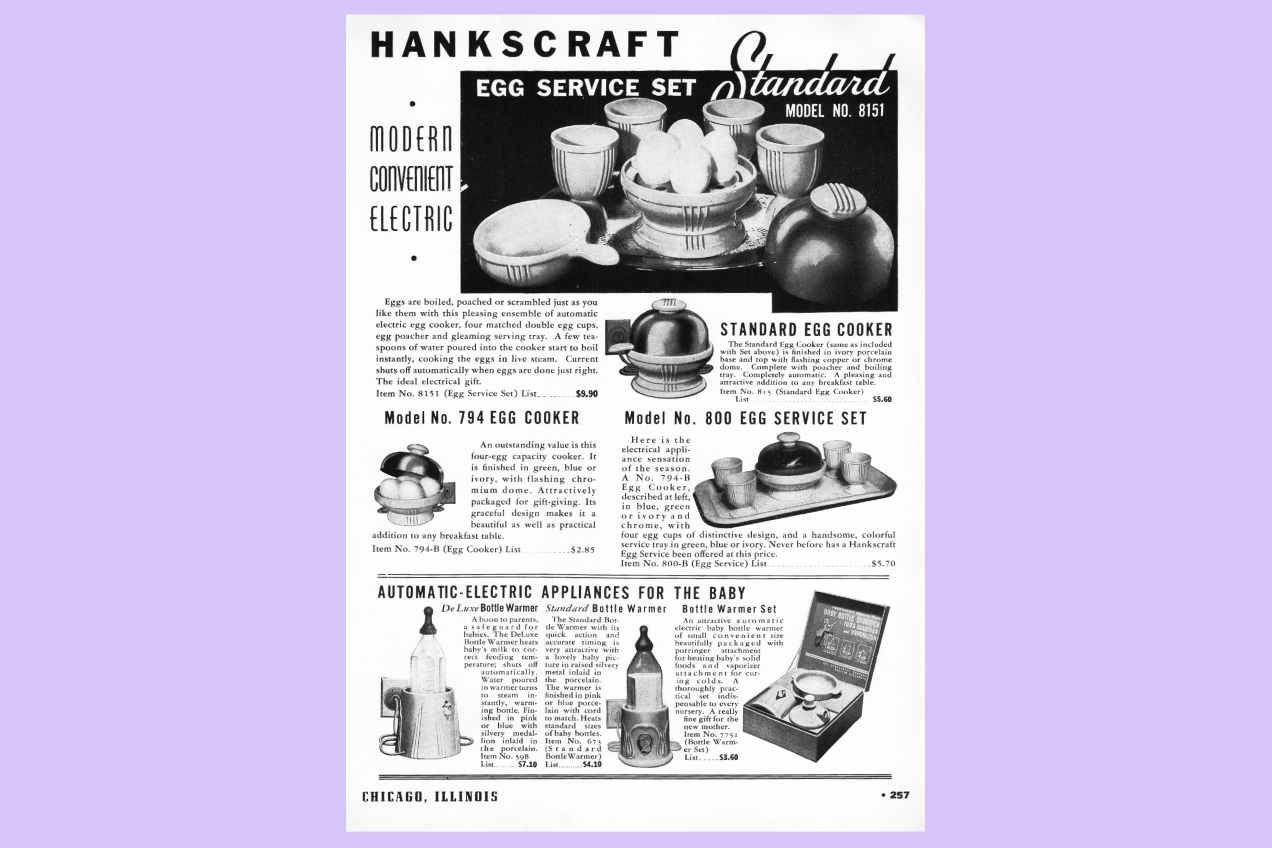 Но так было до тех пор, пока американский изобретатель Маршалл Хэнкс в 1920-х годах не разработал устройство, в котором вода в специальном резервуаре использовалась в качестве проводника электрического тока. Она замыкала цепь из двух электродов, быстро нагревалась и, испаряясь, готовила яйца на пару. Когда вода полностью выкипала, цепь разрывалась и агрегат автоматически отключался — соответственно, количество воды определяло время приготовления. Яйцеварки марки Hankscraft (и их же подогреватели для детских бутылочек, устроенные по тому же принципу) оставались популярными на американском рынке и на домашних кухнях в течение десятилетий.