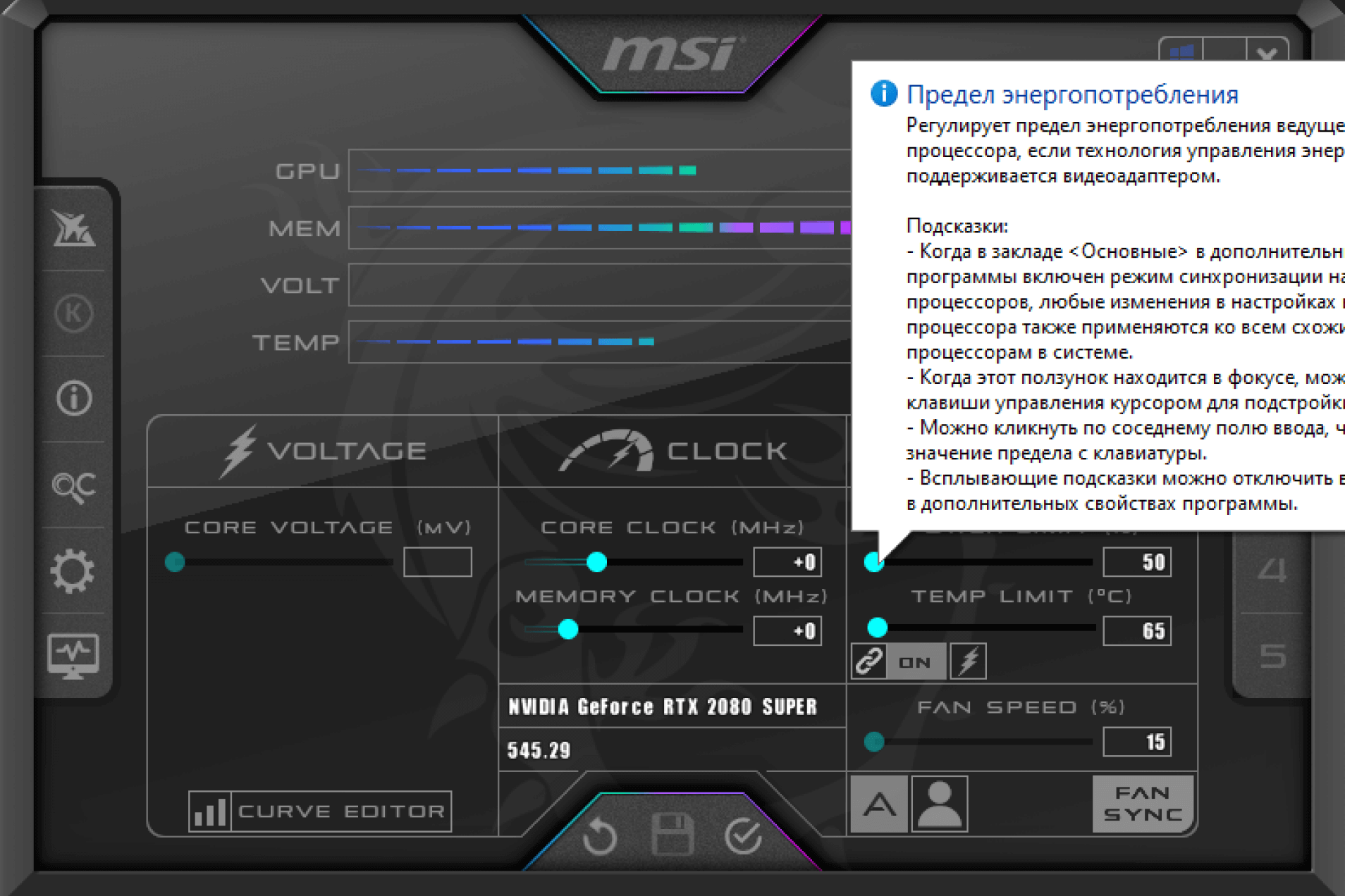 MSI Afterburner указывает на неполную загрузку видеокарты