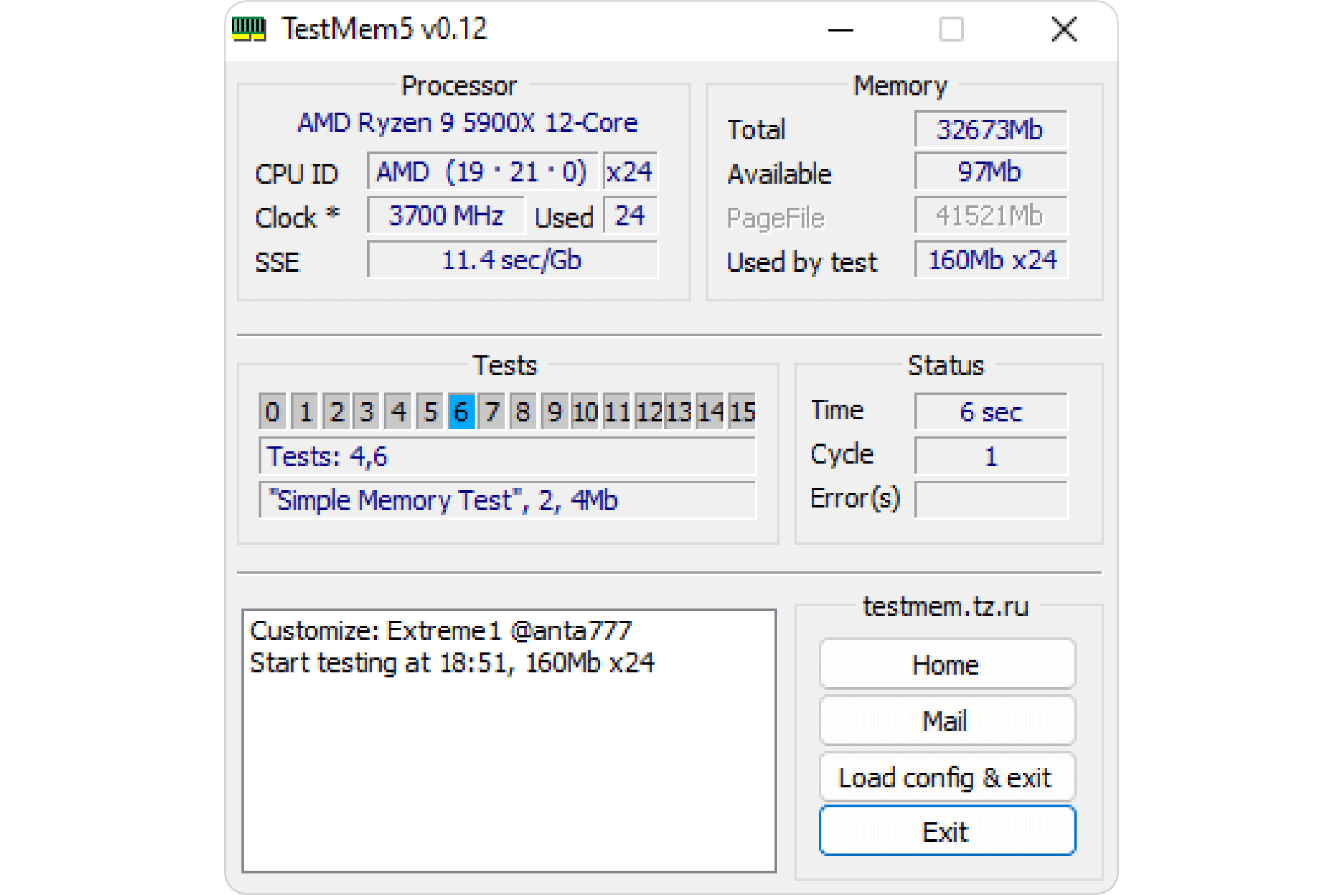 Но это лишь легкая, поверхностная проверка — стоит ее усложнить. Для этого нужно скачать экстремальный пресет тестирования от Anta777, открыть папку Testmem5, зайти в каталог bin, удалить файлы Cfg.link и MT.cfg, после чего скопировать в него скачанный файл. Переименовать его в MT.cfg — и можно начинать.
