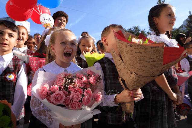 Этот сюжет из разряда обязательных. Но будьте готовы к любым сюрпризам. Будет ли хорошо виден ваш ребенок, будет ли он смотреть в нужную сторону, насколько зрелищными будут фото с линейки — большой вопрос. В этой ситуации можно дать два совета.