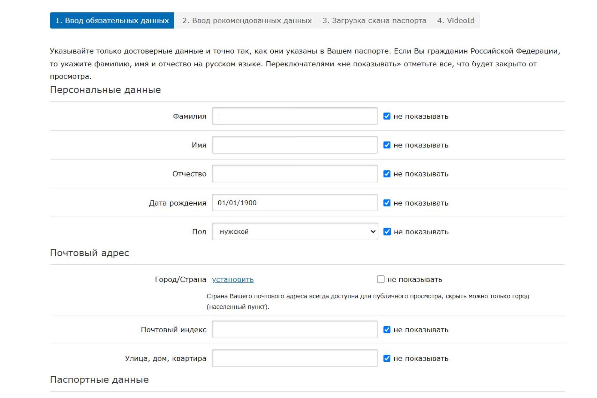 - Создайте кошелек на сайте платежной системы, затем — авторизуйтесь на Passport WebMoney, укажите свои паспортные данные, номер ИНН, СНИЛС.