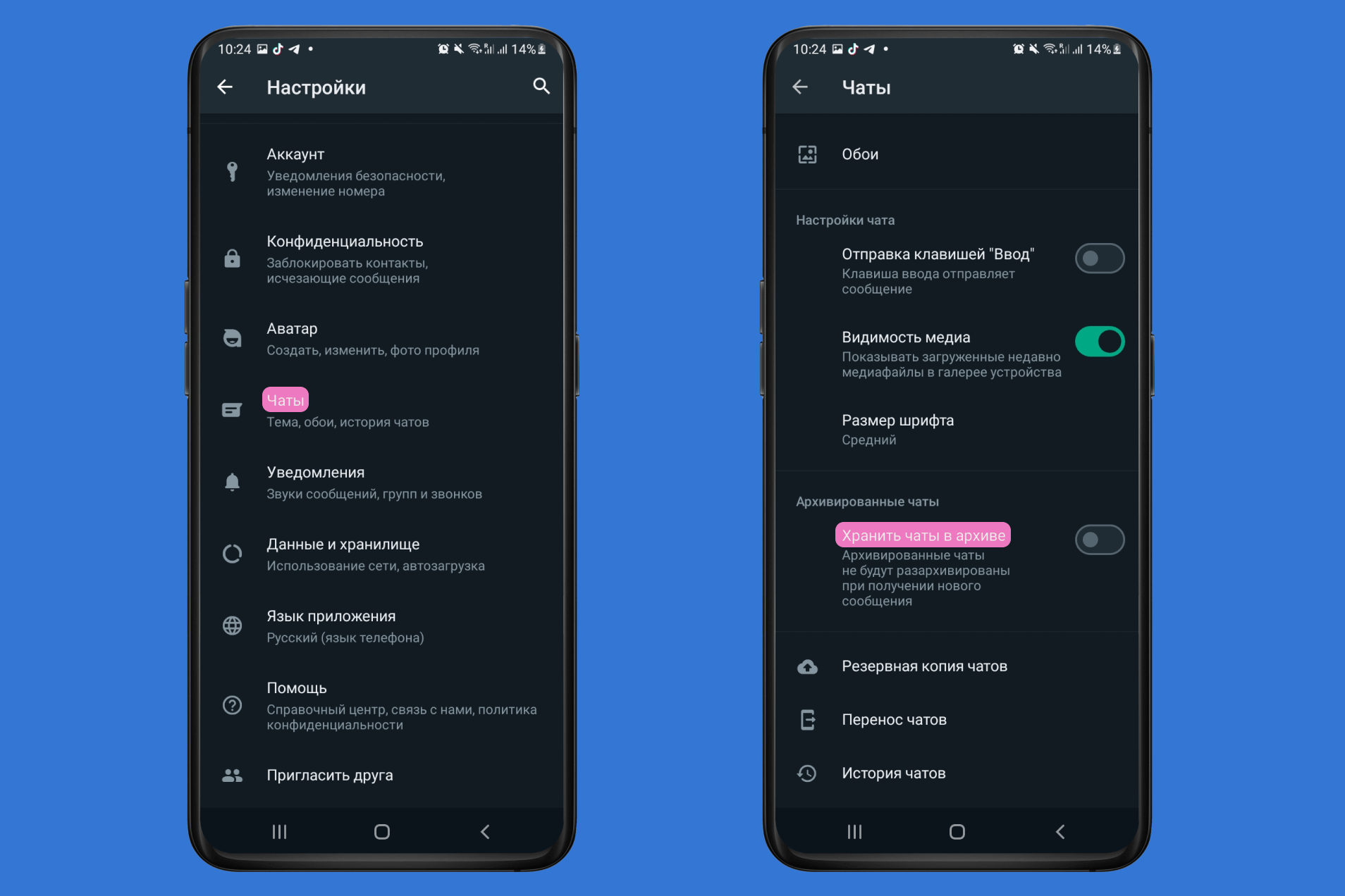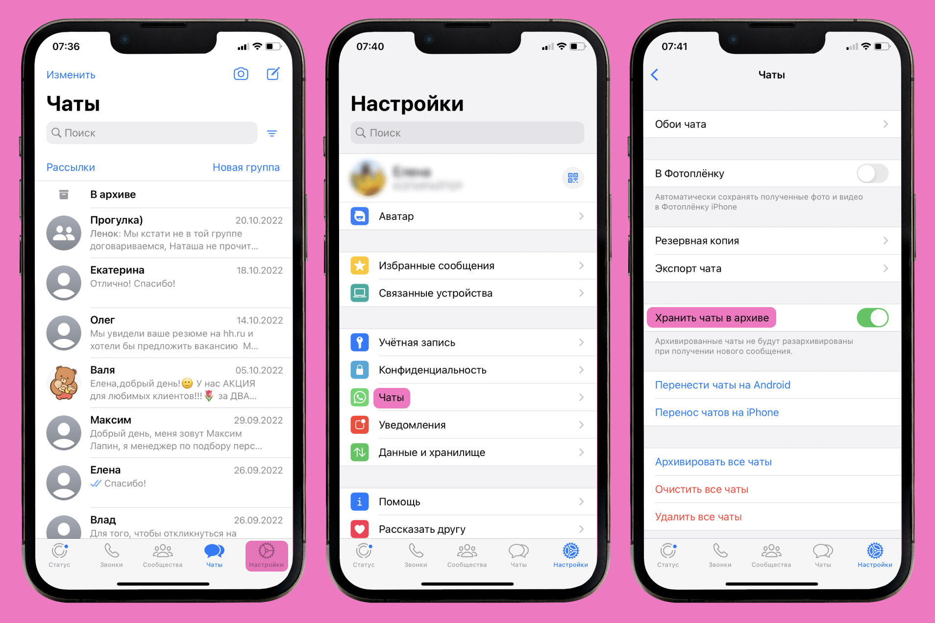- Отключите функцию «Оставить чаты в архиве».