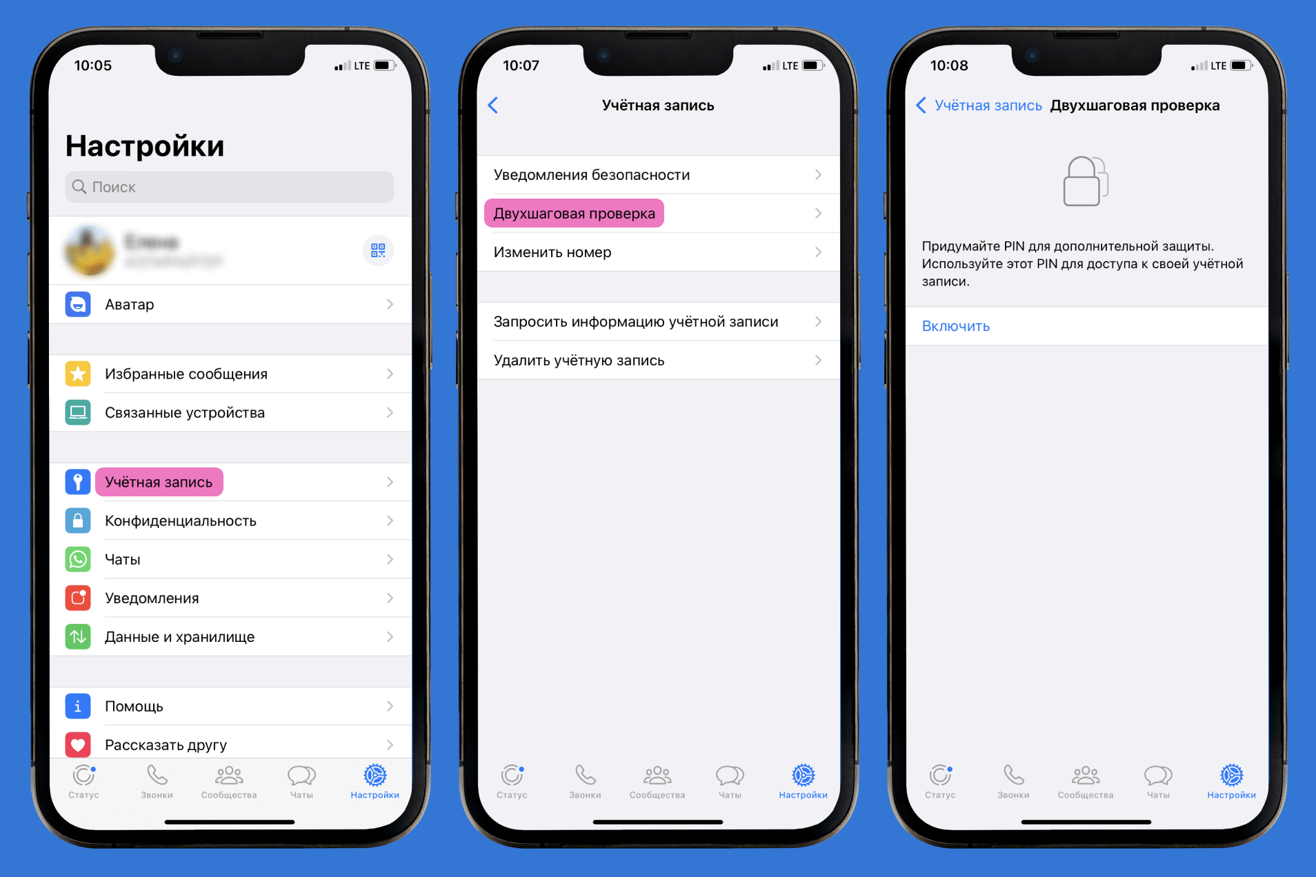 - никому не рассказывать, какой пароль был установлен для входа в WhatsApp.