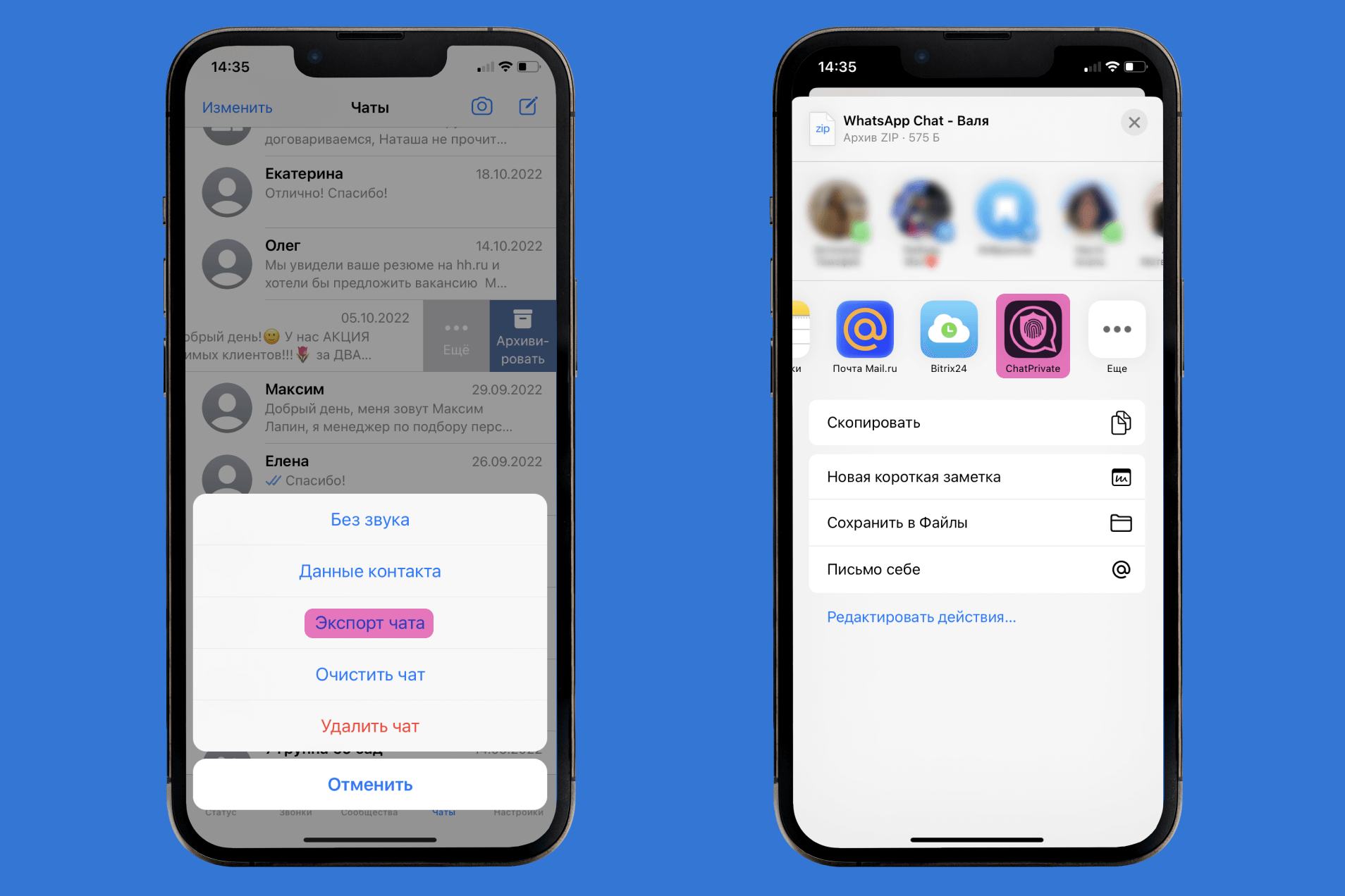 - Нажмите «Экспорт чата».