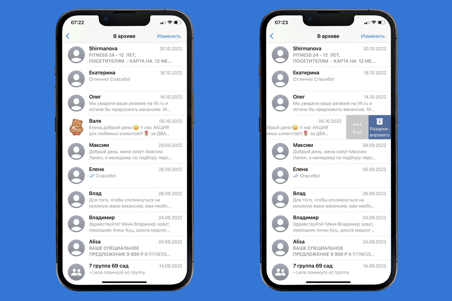 Вернуть нужную беседу из архива также можно через любой промежуток времени.