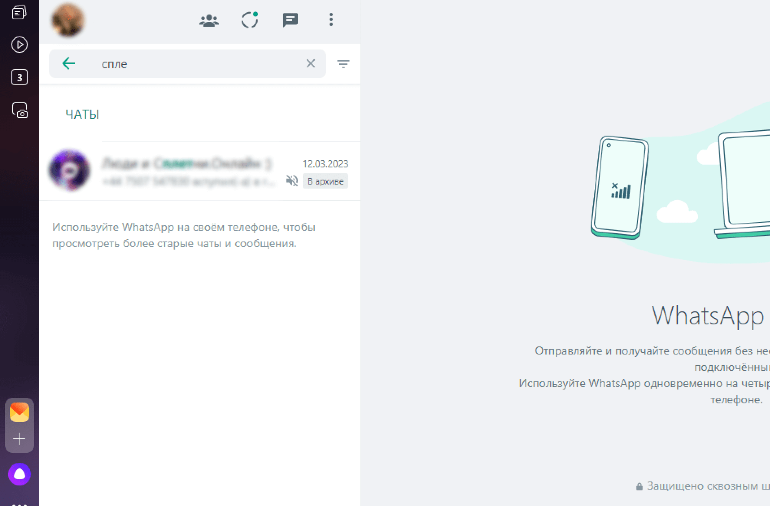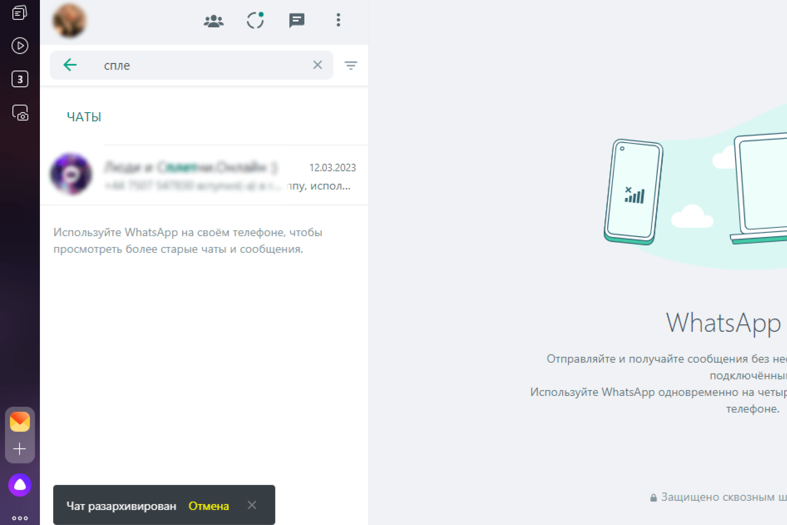 Если вы пользуетесь web-версией WhatsApp и хотите вернуть диалог из архива, вам необходимо:
