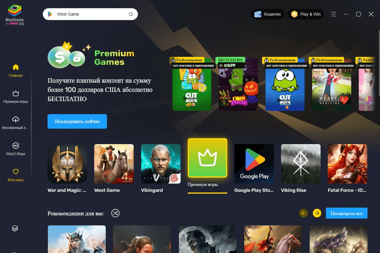 - Пройдите в пункт «Мои игры». Вы увидите кнопку «Установить APK». Скачайте Brawl Stars, например, с APKPure. Добавьте файл в BlueStacks и установите игру.