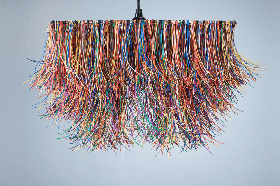 Работы Хошро можно легко повторить в домашних условиях. Вы наверняка знаете, что внутри обычных скучных проводов скрываются как раз тонкие и яркие. Чтобы извлечь их, вам понадобится только канцелярский нож. Надрежьте внешнюю оболочку продольно — и куча разноцветных проводков теперь ваша, можно творить!